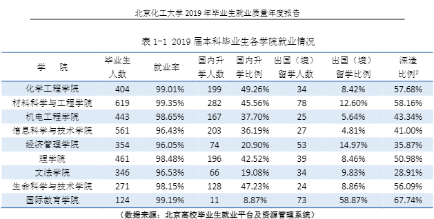 以下数据来自北京化工大学2019届毕业生就业质量报告
